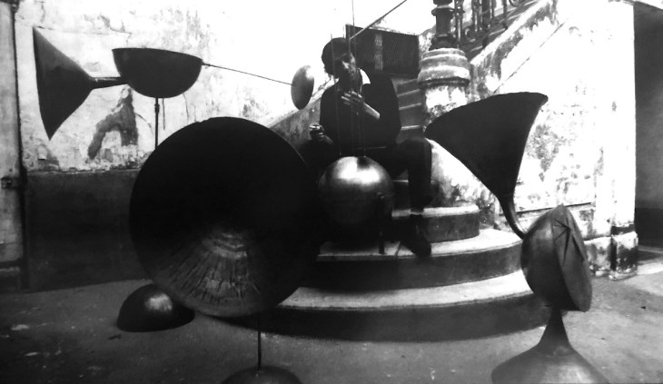 Um pouco de história primeiro. Natural de Fernando Pessoa (no estado do Paríba) em 1945, Fernando Falcão viva em São Paulo quando a ditadura militar tomou as rédeas do país. Conta-se que terá colocado uma bomba numa escola privada em 1968, acabando o irmão por ajudá-lo a partir para outro lugar. Mudou-se para Paris, iniciando um exílio que duraria até 1984 e durante o qual conheceu figuras e artistas que o marcaram. Ali chegou já com talento como percussionista. Mas foi de uma parceria que desenvolveria depois com o sogro – o artista plástico François-Xavier Lalanne – que brotaram possibilidades de exploração de novos sons e formas.
