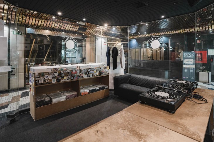 Mas regressemos à loja. E aqui temos direito a uma visita guiada: “O foco da loja foram sempre os discos novos. A ideia é a de fornecer à cidade de Lisboa uma loja onde DJs e colecionadores pudessem encontrar discos de dança (house e techno maioritariamente) com a frescura com que se encontra nas lojas online ou noutras grandes cidades europeias. Recebemos novas entradas todas as semanas e de diferentes distribuidoras. O principal formato é o vinil e maioritariamente em 12’’. Temos alguns 7’’, mas muito poucos e uma secção da parede para as cassetes da Fungo (editora portuguesa de música eletrónica) que apenas edita neste formato. No entanto a loja sempre teve uma secção dedicada a discos em segunda mão que tem vindo a crescer exponencialmente nos últimos anos com a aquisição de colcções de antigos DJs. Para além do stock que se encontra na loja principal, por marcação podem ter acesso e ‘diggar’ no nosso escritório / armazém que fica no piso superior e onde encontram mais de 2000 títulos de máxis de dança”.