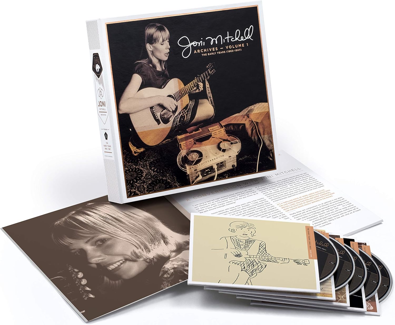 A caixa Joni Mitchell Archives Volume 1 – The Early Years (1963-1967) não se esgota na música que podemos encontrar nos cinco CD (havendo edições avulso das gravações da atuação radiofónica em 1963 e da atuação na Canterbury House). O booklet de 36 páginas que acompanha a caixa não só inclui fotografias de infância e juventude como reproduções de manuscritos, de etiquetas de caixas de bobines, flyers (na altura dizia-se palnfletos) e recortes de imprensa, assim como uma extensa (e cândida) entrevista conduzida por Cameron Crowe expressamente feita para esta edição e que não deixa de fixar ecos do ano difícil que vivemos em 2020. Como quem diz que podemos falar do passado, mas é neste presente que estas memórias são revisitadas. Tudo correto, portanto! E venha o volume dois!