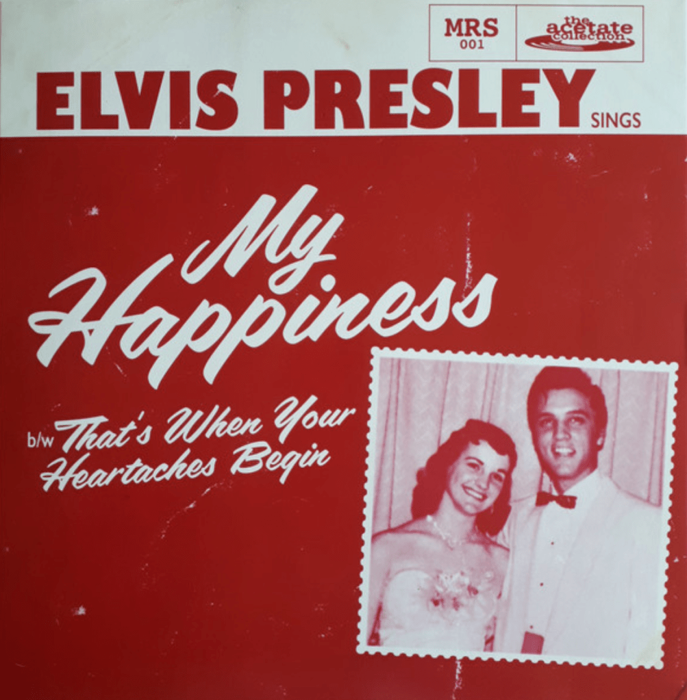 Acompanhado pela sua guitarra, Elvis começou por cantar “My Happiness”, uma canção dos anos 30 de Borney Bergantine, mas com uma letra de Betty Peterson Blasco datada de 1948 e que então havia gerado um momento de sucesso para a dupla Jon & Sondra Steele e, desde então recriada em várias ocasiões, uma delas por Ella Fitzgerald. Logo depois, para completar as duas faces do acetato, Elvis cantou “That’s When Your Heartaches Begin”, um tema de 1937 de Fred Fischer, William Raskin e Billy Hill, gravado nesse mesmo ano pelo grupo Shep Fields Rippling Rhythm e reinventada quatro anos depois pelos Ink Spots. O próprio Elvis regressaria a esta mesma canção pouco tempo depois, regravando-a a 4 de dezembro de 1956 na sessão inesperada de um grupo pontualmente reunido neste mesmo estúdio, que juntava a Elvis nada mais nada menos do que Johnny Cash, Jerry Lee Lewis e Carl Perkins e que ficou conhecido como o Million Dollar Quartet. Em janeiro de 1957 Elvis voltou a esta canção, regravando-a uma vez mais, daqui resultando o lado B do single “All Shook Up”. Os Beatles também têm esta canção inscrita na sua história, já que a interpretaram em várias ocasiões em concertos entre 1959 e 1961 tanto em Liverpool como em Hamburgo e não só.