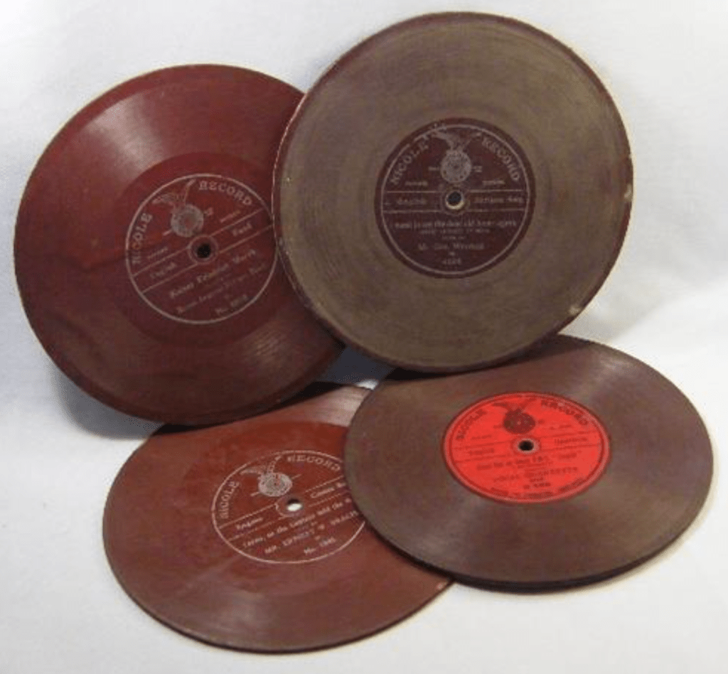 Com o negro definido como padrão pelos primeiros discos patenteados por Emile Berliner ainda em finais do século XIX, as primeiras exceções à regra chegaram com o ano 1900 na linha do horizonte com edições nas cores vermelha e castanha pela Vitaphone Talking Machine Co, às quais se seguiram os lançamentos em cartão laminado castanho da Nicole Records (entre 1904 e 1908) ou, já nas décadas de 1910 e 1920, os célebres discos vermelhos e castanhos da Vocalion, sobre os quais a companhia dizia serem de maior durabilidade.