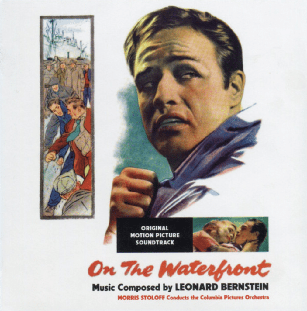 Todos estes caminhos conduziram-no, sem surpresa, para a banda sonora de um dos filmes norte-americanos social e culturalmente mais marcantes da década de 50. Com realização de Elia Kazan, assegurando a estreia de Eva Marie Saint e tendo dado a Marlon Brando um dos maiores papéis da sua carreira, todos eles de resto brindados com três dos oito óscares que o filme conquistaria entre as 12 nomeações atribuídas, “Há Lodo No Cais” (no original “On The Waterfront”) transporta-nos para o espaço de trabalho precário de estivadores num cais nova-iorquino daquele tempo e foca atenções sobretudo da trama e personagens. A música de Bernstein, aparentemente discreta (quando comparada com as outras duas experiências do maestro e compositor no cinema, nomeadamente as adaptações ao grande ecrã dos musicais “On The Town” e “West Side Story”), serve magnificamente, na sua face mais lírica, tanto os instantes de mergulho introspectivo e sequências românticas, como é capaz, depois, de acentuar episódios de tensão. Curiosamente, e apesar do impacte do filme e do facto de Bernstein (nomeado por este trabalho, mas não brindado com um Óscar) ser já um nome reconhecido em várias frentes (inclusivamente nas suas outras experiências para cinema), a música de “Há Lodo No Cais” não conheceu na altura senão expressão em discos de 78 rotações, gravados por várias orquestras, que destacavam apenas a música que se escutava no genérico, surgindo depois, em 1961, uma suite sinfónica que juntava vários segmentos da banda sonora num LP de Bernstein com a New York Philarmonic.