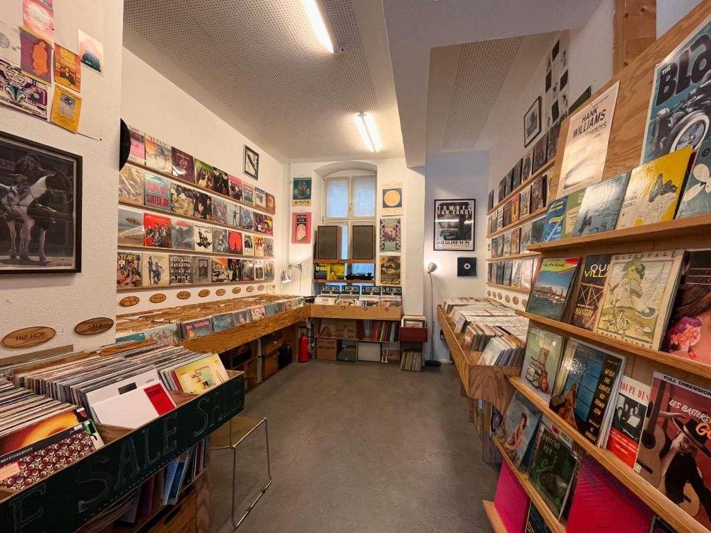Situada ligeiramente a norte do centro da cidade, a poucos minutos de caminhada a pé da estação de S-Bahn de Nordbanhof, a loja que se apresenta com o muito direto e simples nome The Record Store, foi fundada em 2004, ou seja, tem já duas décadas de vida. Apesar de conter uma zona dedicada a novos lançamentos, aposta sobretudo em vinil usado que vemos exposto em duas salas bem arrumadas, com elegantes armários em madeira, uns para os formatos de 12 polegadas (LP e máxis), outros, com gavetas, para os discos de sete polegadas.
