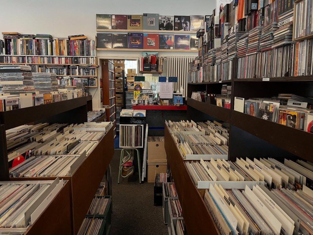 A alguns minutos (via tram, linhas 15 e 16, ou até mesmo em caminhada a pé) do centro da cidade de Basileia encontramos a Schmocki’s Ohrwurm Oase, uma loja que junta um vasto stock de discos e de títulos em suportes de home video (DVD e Blu-Ray). Com duas décadas de existência, a loja apresenta discos e filmes ente armários e corredores que enchem os cerca de 100 metros quadrados do espaço. O vinil e o CD partilham protagonismo, oferecendo títulos usados, tal como encontramos entre a oferta em DVD e Blu-Ray.